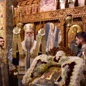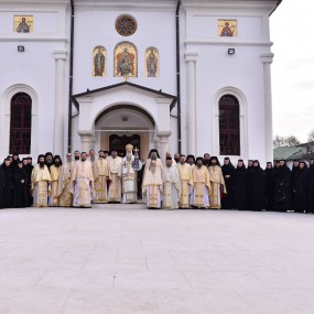 În ziua hramului, numeroși pelerini au participat la Sfânta Liturghie, mărturisind și în felul acesta că rostul venirii Sfântului Duh în lume este sfinţirea oamenilor. Cuvântul de învățătură adresat de către Părintele Protoiereu Ion Dincă a descoperit deodată cu grija părintească a Înaltpreasfințitului Părinte Varsanufie pentru toți fiii duhovnicești, viețuitori în mănăstiri sau în familie, importanța cultivării virtuților în viața noastră, a curățirii de patimi și asemănării omului cu Dumnezeu care se manifestă ca „o iradierea a prezenței lui Dumnezeu din om”.